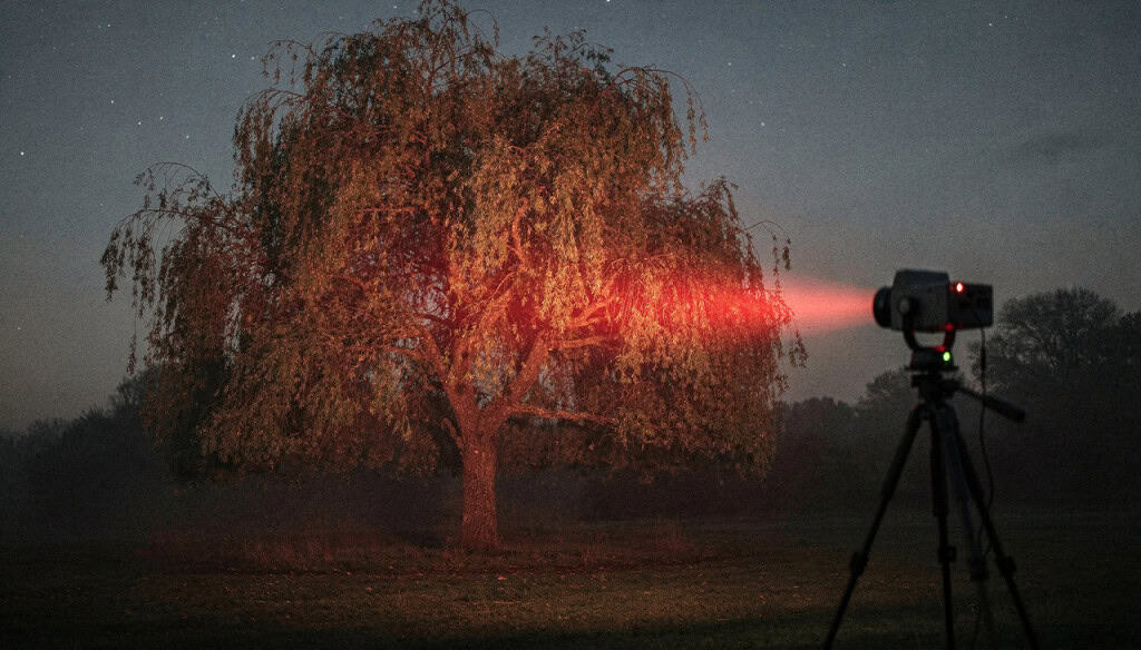 Para evitar que a luz artificial acordasse as plantas, os cientistas utilizaram luz infravermelha. Esses lasers terrestres fazem uma varredura completa da árvore em minutos, criando modelos tridimensionais de altíssima precisão. Isso permitiu notar que o movimento não é causado pelo vento, mas sim por uma mudança interna no organismo vegetal.