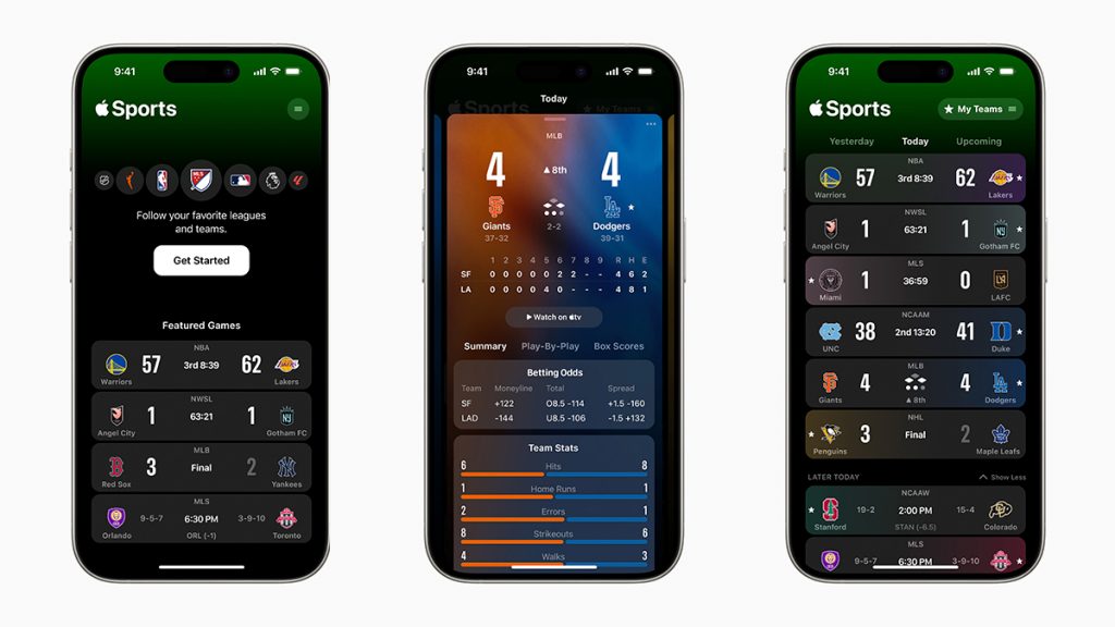 Já no lançamento, os usuários terão acesso a dados ao vivo da NBA, NHL e MLS; Outras ligas serão adicionadas ao longo do tempo, conforme chegada de novas temporadas, incluindo a NFL, MLB, NCAAF, NWSL e WNBA; O aplicativo é gratuito e, inicialmente, não contará com anúncios; Vale pontuar que não será possível assistir ao jogo no app, mas ele indicará em que canais ou streamings acompanhar as partidas; Será possível não apenas favoritar times e campeonatos, como criar alertas sobre jogos; Por ora, o Apple Sports será disponibilizado apenas nos EUA, Reino Unido e Canadá. Ainda não há previsão para a chegada do app em outros mercados.