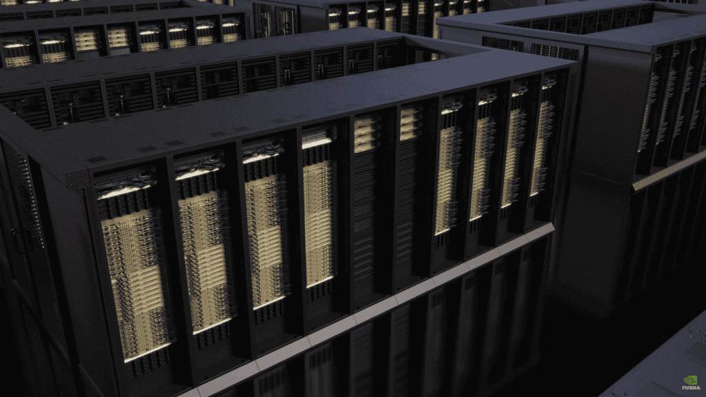 A quinta geração do NVLink melhora significativamente a escalabilidade para sistemas multi-GPU de maior porte, permitindo que as GPUs compartilhem memória e computação para fluxos de trabalho de treinamento, inferência e raciocínio. Uma única GPU Nvidia Blackwell suporta até 18 conexões NVLink de 100 gigabytes por segundo, totalizando uma largura de banda de 1,8 terabytes por segundo — o dobro da geração anterior.