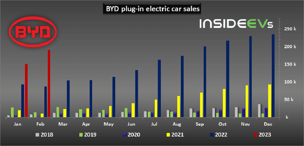 A BYD, recém-chegada no Brasil, não desacelera em 2023 e, em fevereiro, mais uma vez, aumentou significativamente suas vendas de carros elétricos plug-in, fortalecendo-se como a marca plug-in n.º 1 na China e expandindo as exportações.
