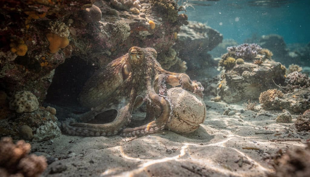 A habilidade de manipular objetos é uma das provas mais claras de inteligência superior. No fundo do mar, polvos foram observados empilhando pedras para proteger a entrada de suas tocas ou utilizando tentáculos para desparafusar tampas de frascos que contêm alimento.