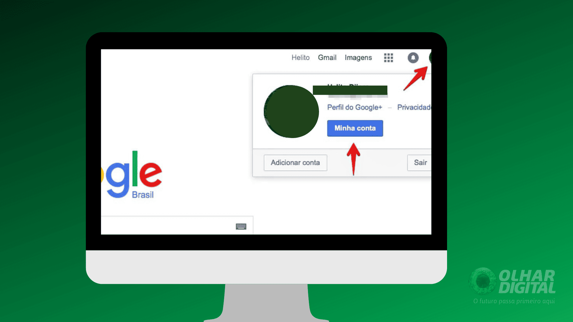 Acesse o site do Google e clique sobre a sua foto de perfil, no canto superior direito da página – caso necessário, faça login em sua conta. Em seguida, clique em “Minha conta”;