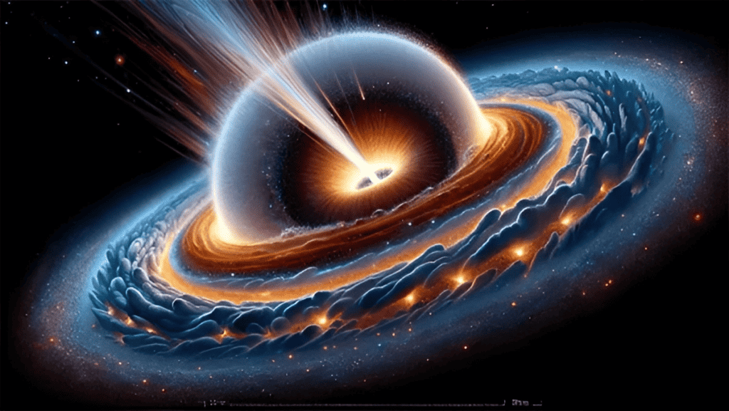 Ilustração da supernova SN 2018evt provocando uma tempestade. Crédito: Lizhi Wang, Observatórios Astronômicos Nacionais, Academia Chinesa de Ciências