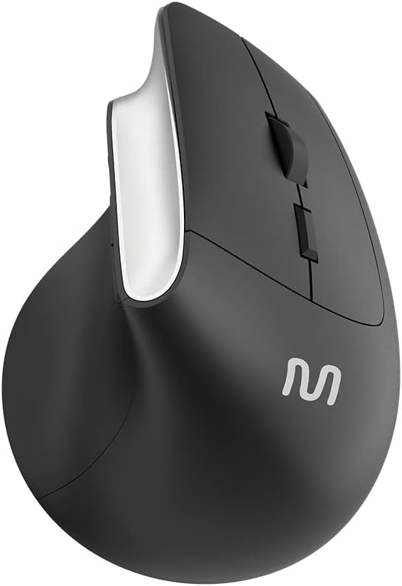 O Mouse Vertical MO384 da Multilaser é um modelo sem fio desenvolvido com foco em ergonomia. Seu formato vertical altera a posição da mão durante o uso, reduzindo a torção do pulso em comparação aos mouses tradicionais.