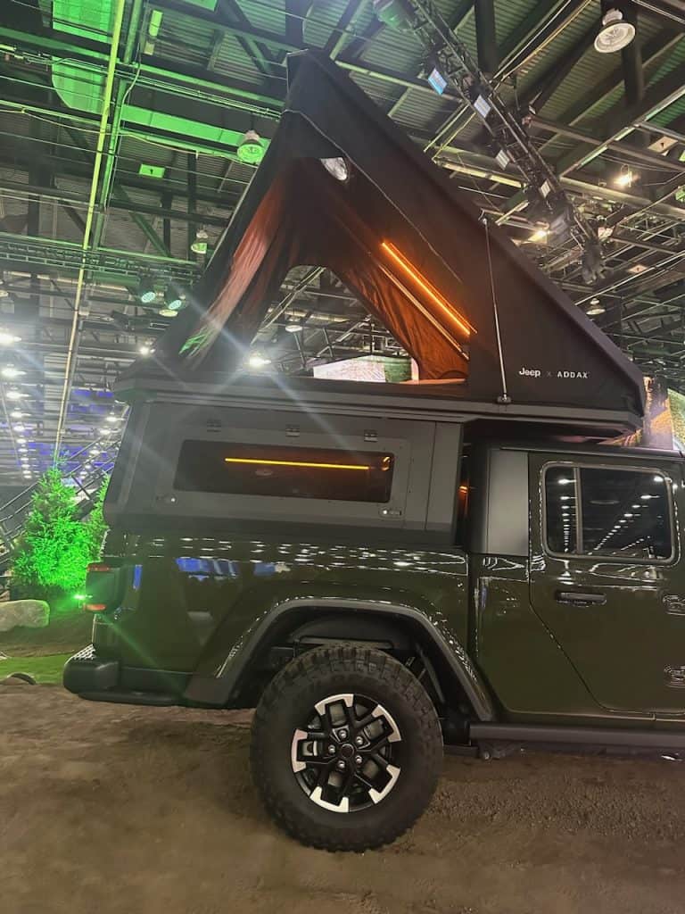A Jeep renovou sua parceria com a Addax Overland, fabricante norte-americana de trailers e campers para overlanding — viagens de aventura, normalmente longas e com acampamento. A ideia é desenvolver o Jeep x Addax Gladiator Overlanding Camper, um grande camper, estrutura de acampamento acoplada ao veículo.