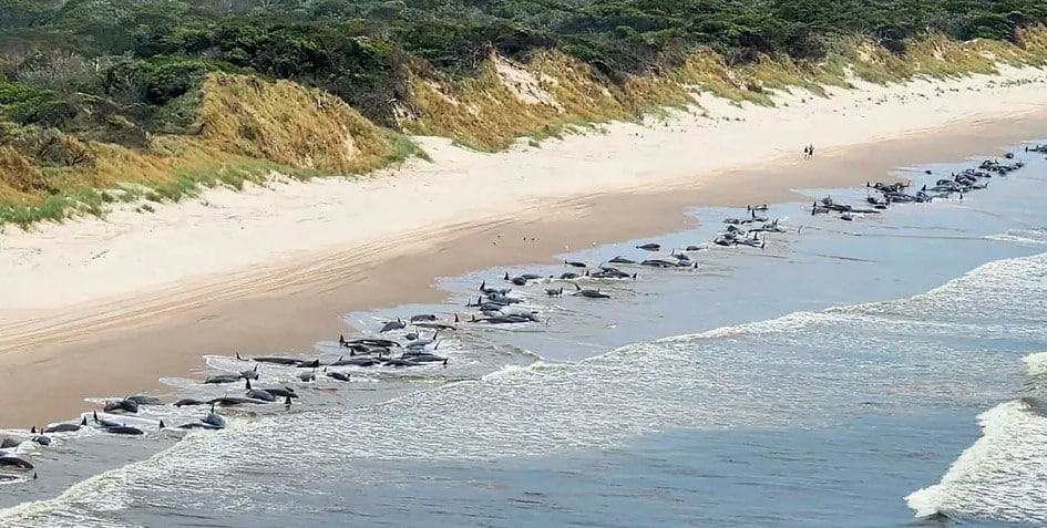 Nesta quarta-feira (21), o Departamento de Recursos Naturais e Meio Ambiente do estado da Tasmânia, na Austrália, divulgou que aproximadamente 230 baleias-piloto foram encontradas encalhadas na costa oeste do estado. Segundo a entidade governamental, aparentemente, apenas metade dos animais estão vivos.