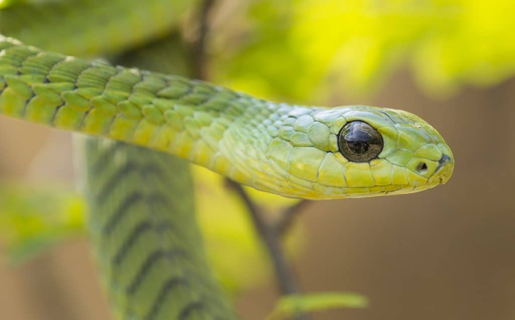 A cobra boomslang, que hoje em dia habita as savanas da África subsaariana, pode ter vivido no Egito Antigo e estar descrita no papiro como “grande cobra de Apophis”. Crédito: Stu Porter – Shutterstock