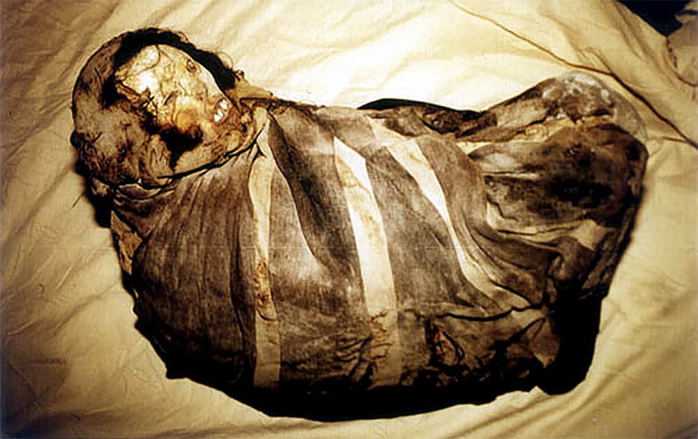 Imagem da múmia Juanita como foi ecnontrada em 1995. Crédito: Gourami Watcher/Wikimedia Commons