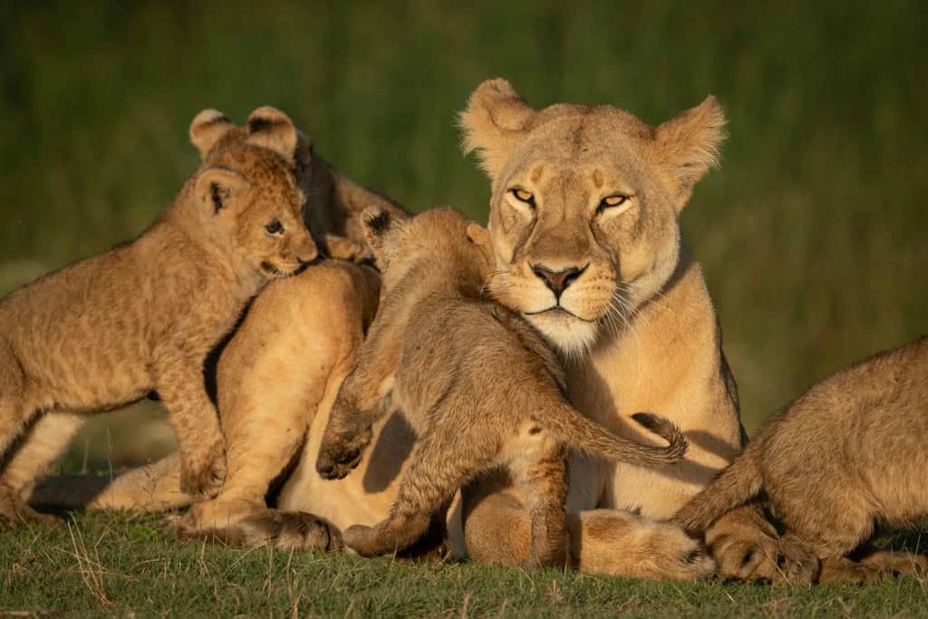 Embora as leoas com juba sejam geralmente estéreis, elas permanecem integradas ao bando e ajudam na proteção dos filhotes de outras fêmeas contra predadores. Imagem: Nick Dale Photo / Shutterstock