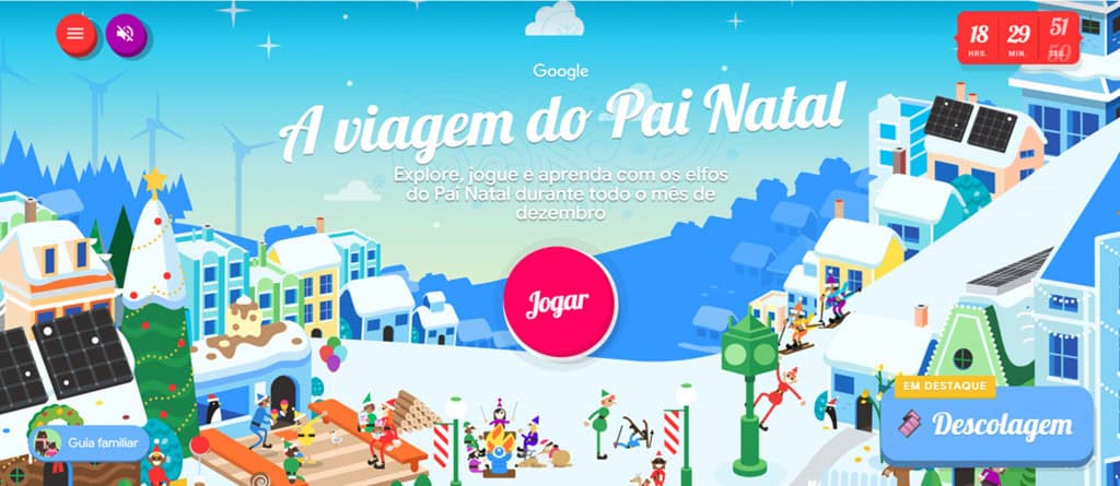 O “Siga o Papai Noel” está de volta! Anualmente, o Google lança o site temático de Natal, que permite acessar dezenas de jogos natalinos, acompanhar a contagem regressiva da ‘decolagem’ do trenó e o trajeto do bom velhinho ao redor do mundo.