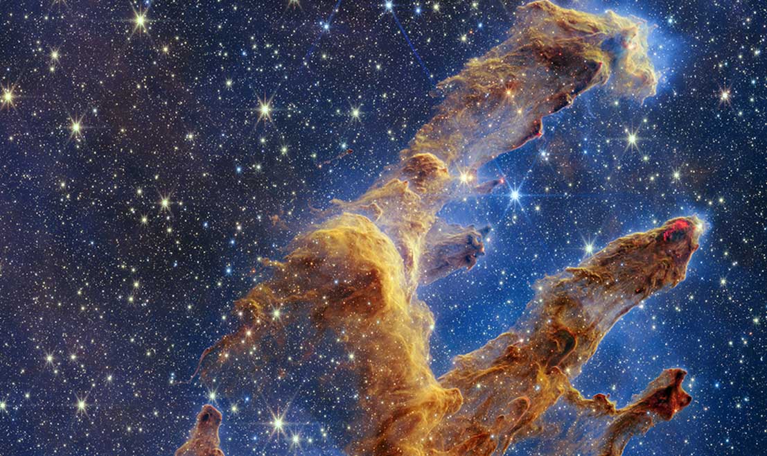 Nesta quarta-feira (19), a Administração Nacional da Aeronáutica e Espaço dos Estados Unidos (NASA) anunciou que o Telescópio Espacial James Webb realizou uma fotografia de novas estrelas se formando em nuvens de gás e poeira. Os equipamentos do telescópio capturaram a região conhecida com Pilares da Criação, fotografada pela primeira vez em 1995 pelo Hubble.
