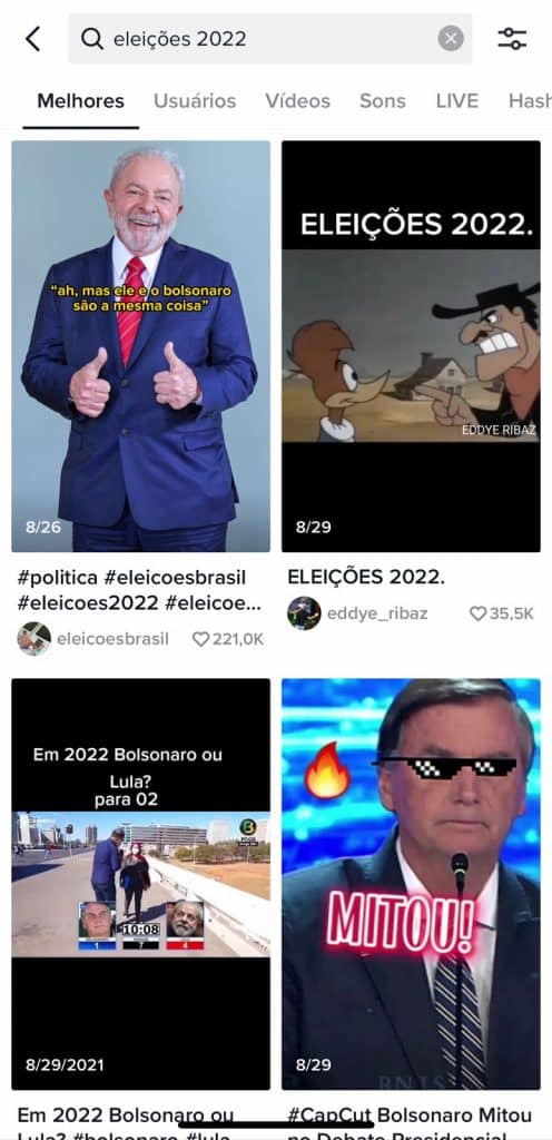 O TikTok já havia anunciado que políticos não podem comprar anúncios ou impulsionar conteúdos. Além disso, a plataforma chinesa também prometeu rotular vídeos que possuem informações eleitorais falsas ou sem confirmação.