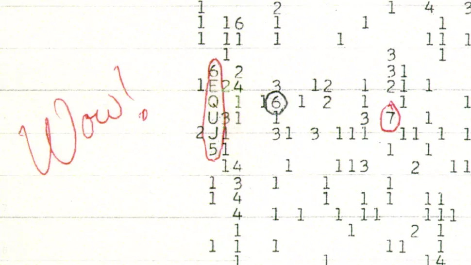 Em 15 de agosto de 1977, o radiotelescópio Big Ear, nos EUA, recebeu um forte sinal aparentemente vindo da constelação de Sagitário e trazendo marcas inesperadas de origem alienígena.