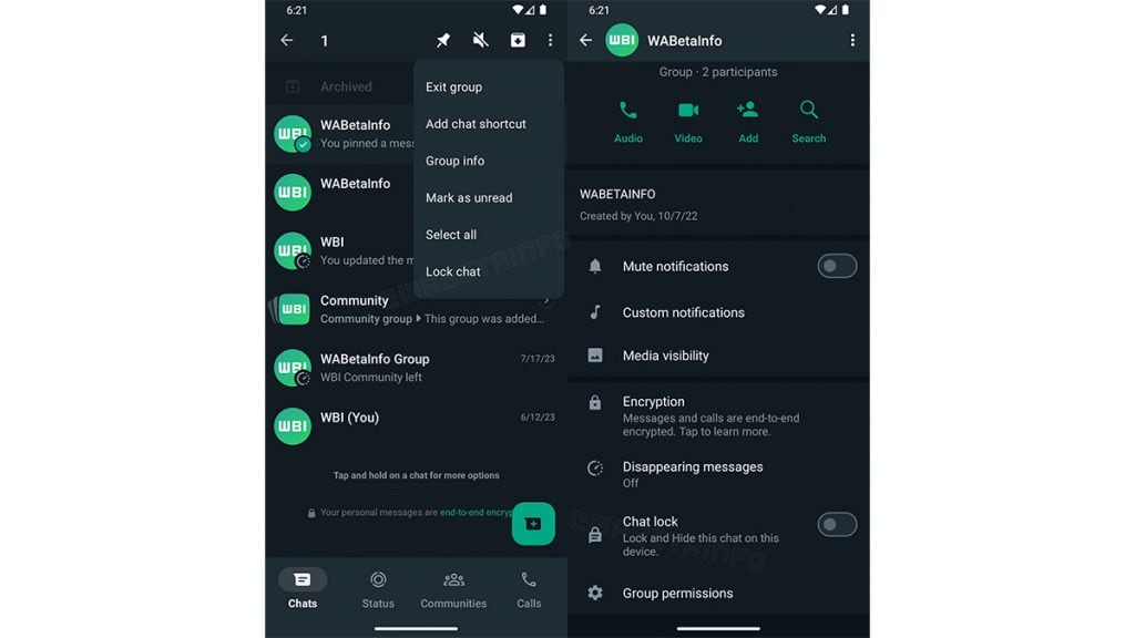 Como pode ser visto na captura de tela, um novo atalho para bloquear conversas diretamente na lista pode estar disponível para alguns testadores beta.