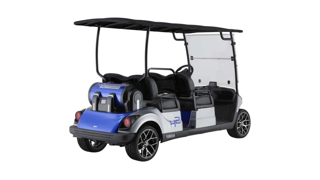 A Yamaha revelou em 2022 planos para começar a trabalhar com veículos movidos a hidrogênio. Foi em 25 de janeiro deste ano que a fabricante japonesa deu mais um passo em direção dessa ideia: a marca apresentou o seu primeiro veículo-conceito movido a hidrogênio, um carrinho de golfe com quatro lugares e dois tanques de alta pressão.